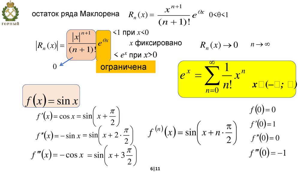 из формулы f(x) = Pn(x) + Rn(x) lim Р n ( x ) f ( x )