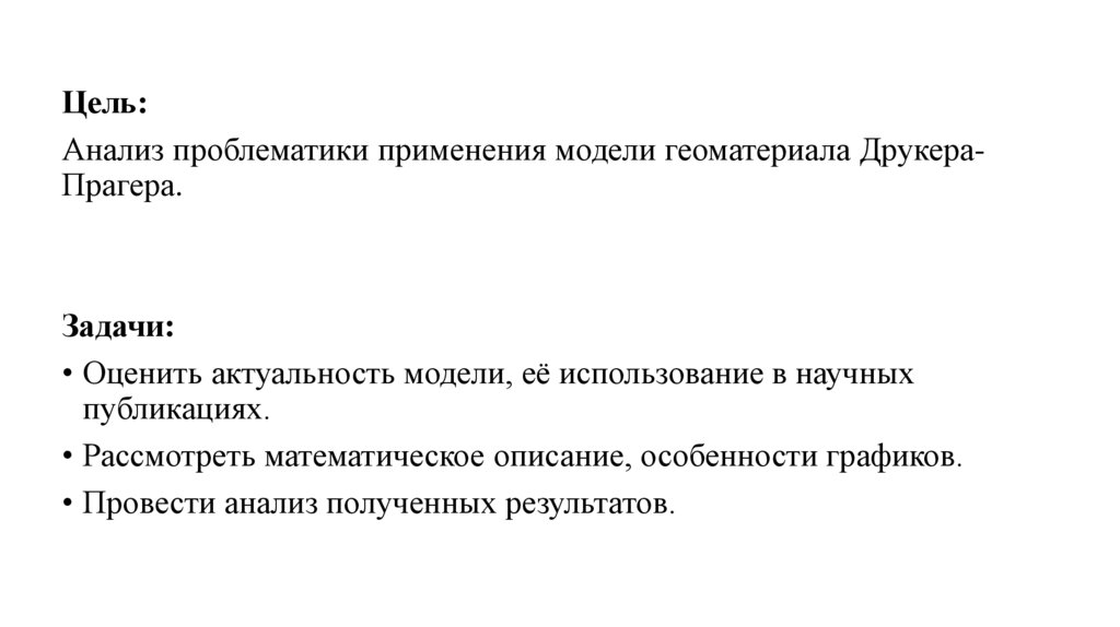 Цель:Анализ проблематики применения модели геоматериала ДрукераПрагера.