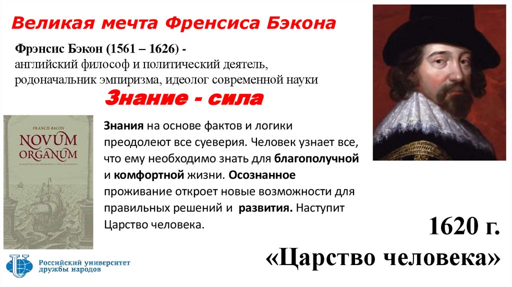 Великая мечта Френсиса БэконаФрэнсис Бэкон (1561 – 1626) английский философ и политический деятель,