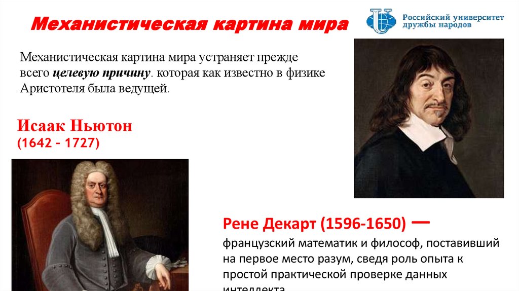 Механистическая картина мираМеханистическая картина мира устраняет прежде