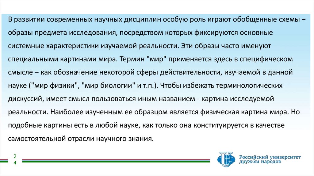 Формирование картин исследуемой реальности в каждой отрасли науки всегда