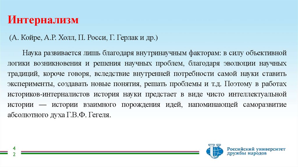 Интернализм(А. Койре, А.Р. Холл, П. Росси, Г. Герлак и др.)