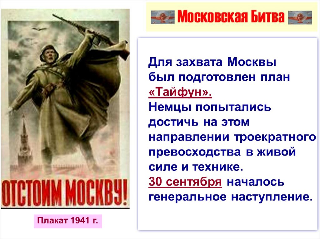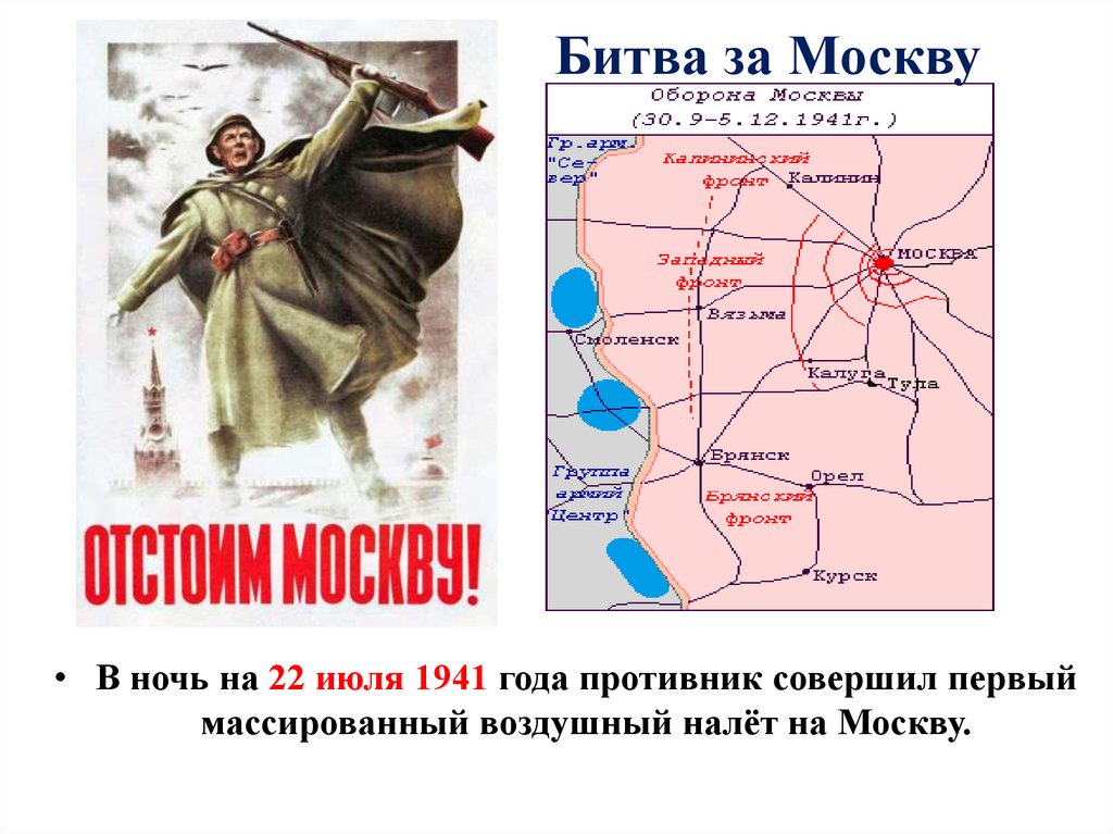 Битва за Москву• В ночь на 22 июля 1941 года противник совершил первый