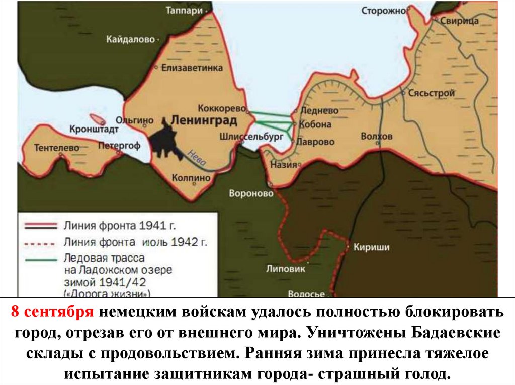 8 сентября немецким войскам удалось полностью блокироватьгород, отрезав его от внешнего мира. Уничтожены Бадаевские