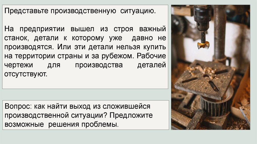 Представьте производственную ситуацию.На предприятии вышел из строя важный