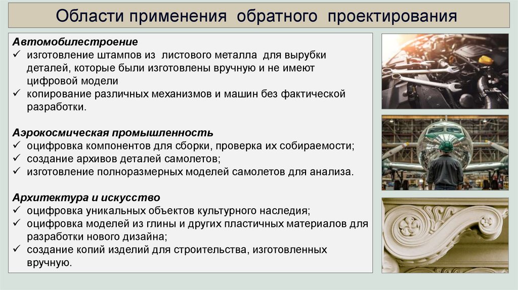 Задачи обратного проектированияполучение новой детали, идентичной существующему образцу;
