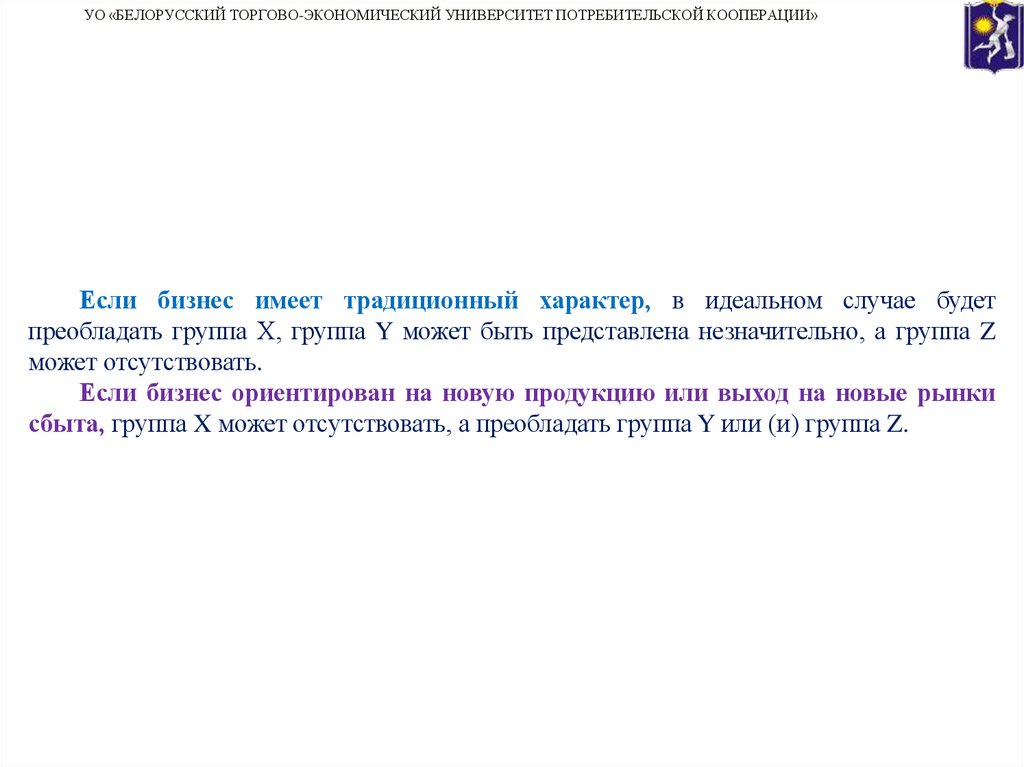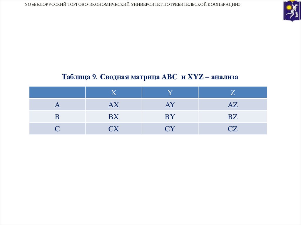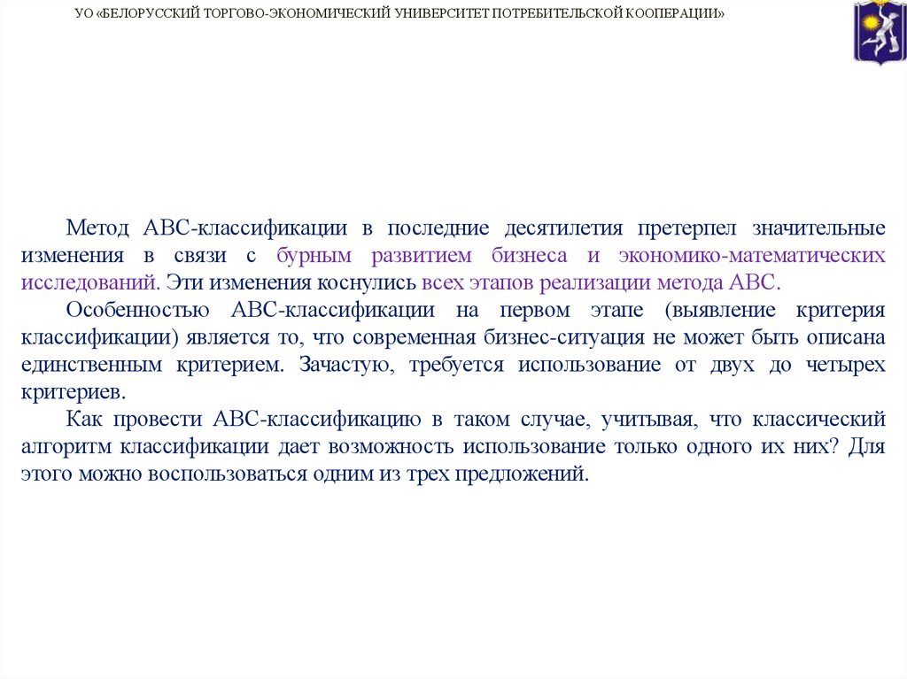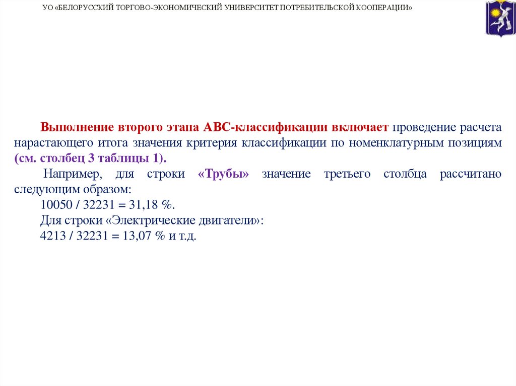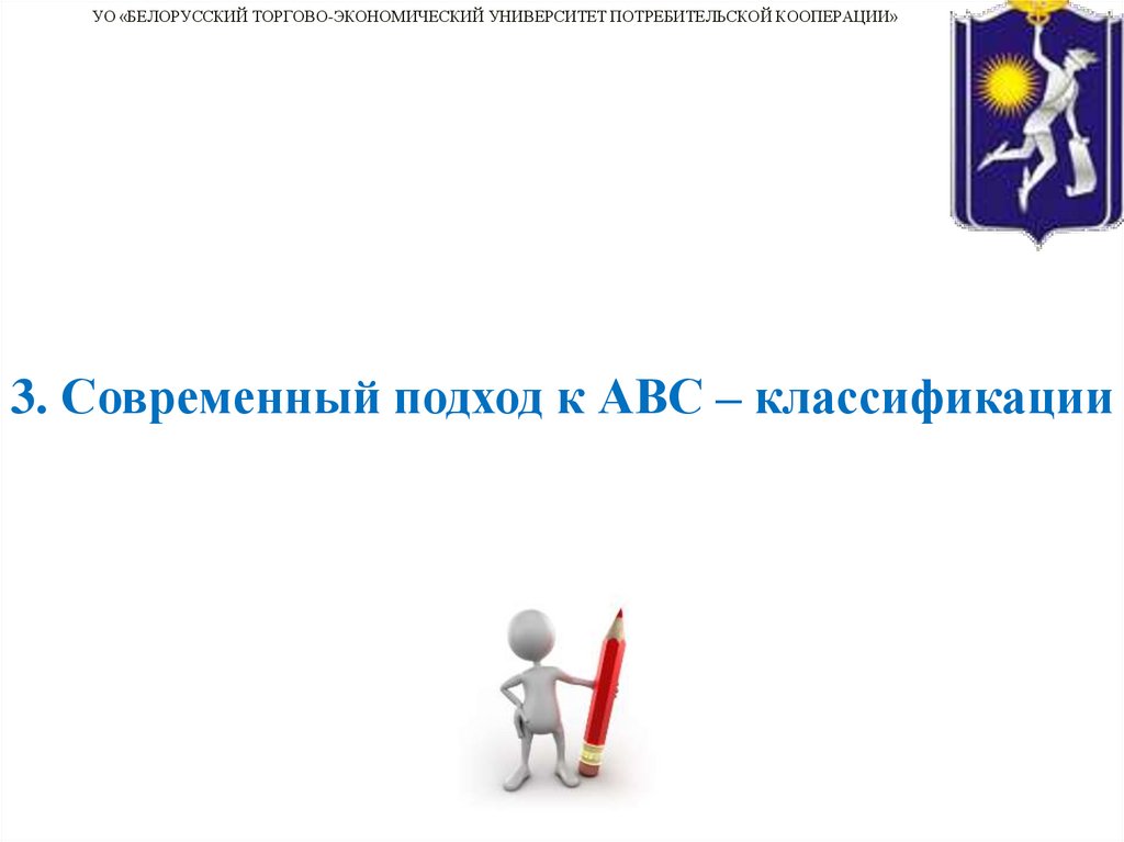 УО «БЕЛОРУССКИЙ ТОРГОВО-ЭКОНОМИЧЕСКИЙ УНИВЕРСИТЕТ ПОТРЕБИТЕЛЬСКОЙ КООПЕРАЦИИ»2. Классический порядок АВС – классификации
