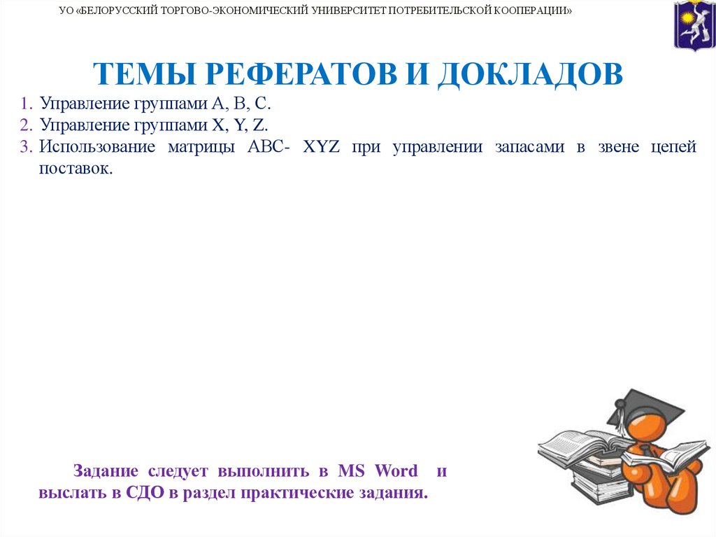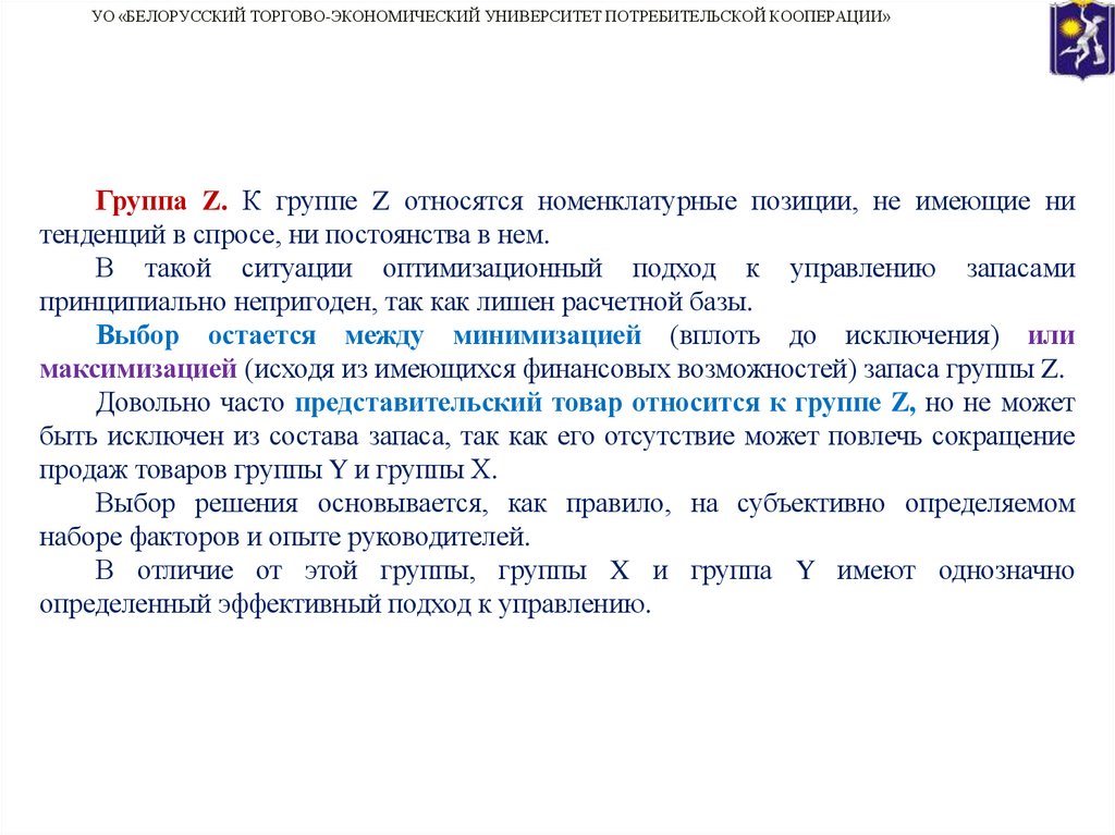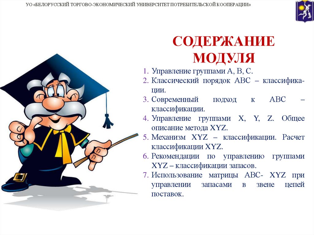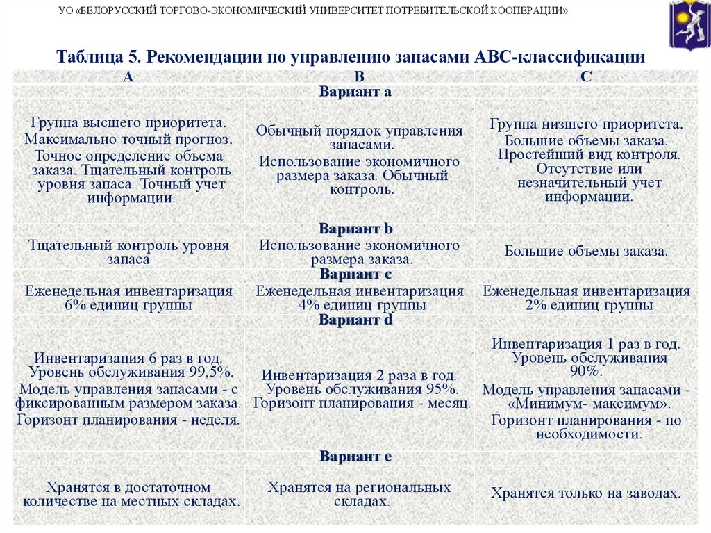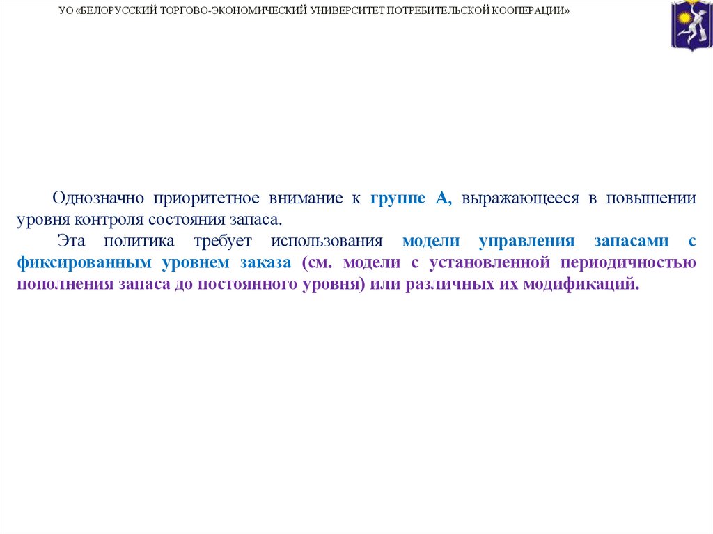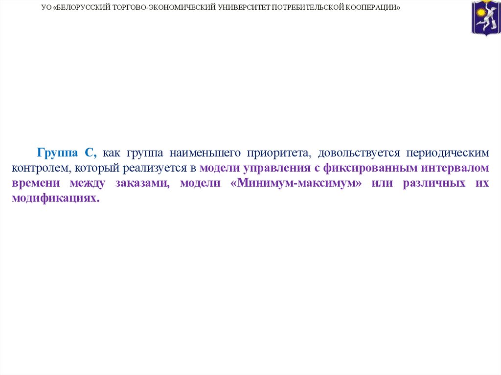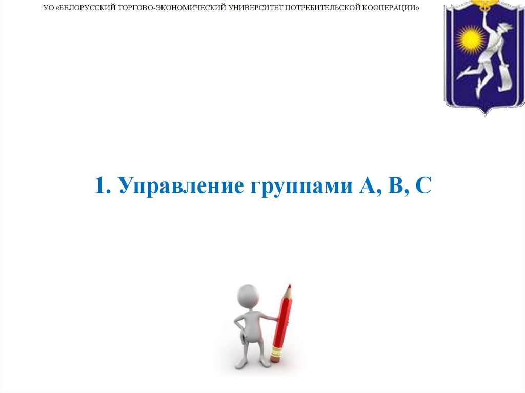 УО «БЕЛОРУССКИЙ ТОРГОВО-ЭКОНОМИЧЕСКИЙ УНИВЕРСИТЕТ ПОТРЕБИТЕЛЬСКОЙ КООПЕРАЦИИ»1. Управление группами А, В, С