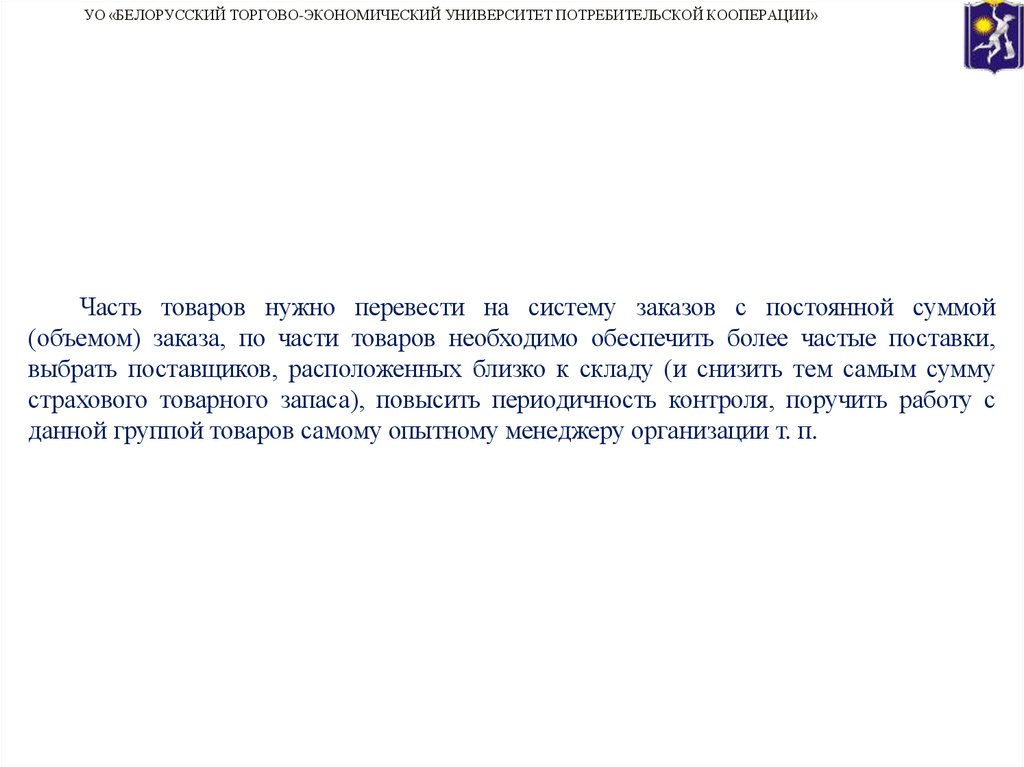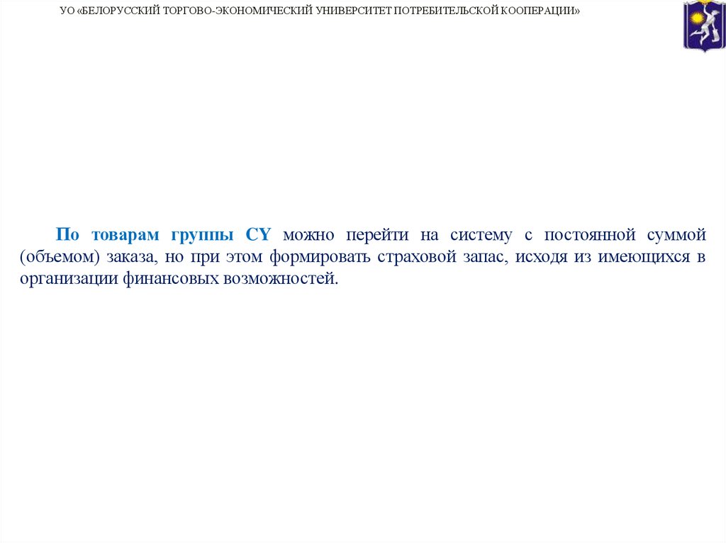 УО «БЕЛОРУССКИЙ ТОРГОВО-ЭКОНОМИЧЕСКИЙ УНИВЕРСИТЕТ ПОТРЕБИТЕЛЬСКОЙ КООПЕРАЦИИ»Управление запасами