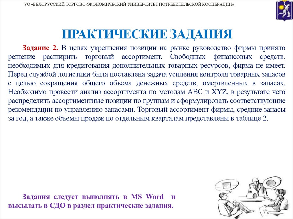 УО «БЕЛОРУССКИЙ ТОРГОВО-ЭКОНОМИЧЕСКИЙ УНИВЕРСИТЕТ ПОТРЕБИТЕЛЬСКОЙ КООПЕРАЦИИ»ПРАКТИЧЕСКИЕ ЗАДАНИЯ