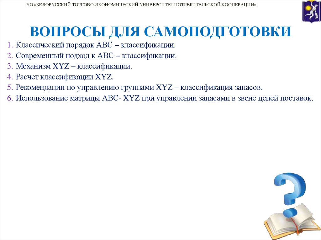 УО «БЕЛОРУССКИЙ ТОРГОВО-ЭКОНОМИЧЕСКИЙ УНИВЕРСИТЕТ ПОТРЕБИТЕЛЬСКОЙ КООПЕРАЦИИ»ВОПРОСЫ ДЛЯ САМОПОДГОТОВКИ