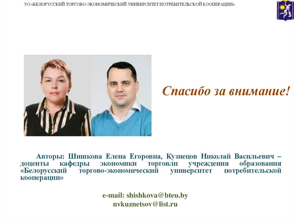 УО «БЕЛОРУССКИЙ ТОРГОВО-ЭКОНОМИЧЕСКИЙ УНИВЕРСИТЕТ ПОТРЕБИТЕЛЬСКОЙ КООПЕРАЦИИ»Спасибо за внимание!