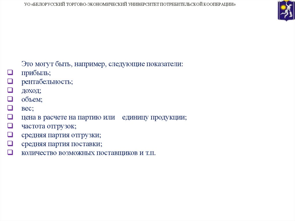 УО «БЕЛОРУССКИЙ ТОРГОВО-ЭКОНОМИЧЕСКИЙ УНИВЕРСИТЕТ ПОТРЕБИТЕЛЬСКОЙ КООПЕРАЦИИ»Это могут быть, например, следующие показатели: