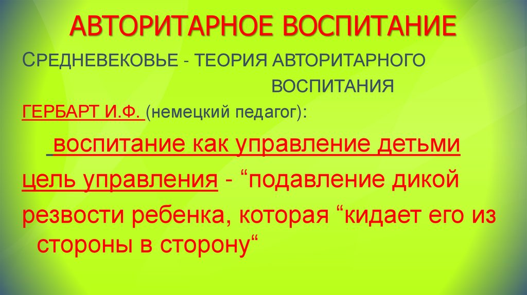 АВТОРИТАРНОЕ ВОСПИТАНИЕСРЕДНЕВЕКОВЬЕ - ТЕОРИЯ АВТОРИТАРНОГО