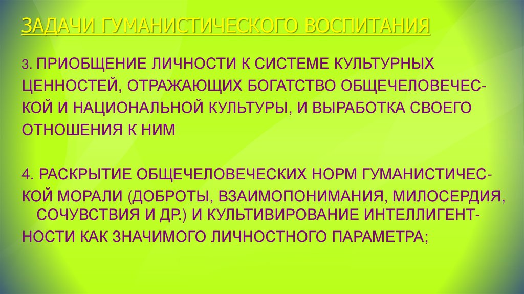 ЗАДАЧИ ГУМАНИСТИЧЕСКОГО ВОСПИТАНИЯ3. ПРИОБЩЕНИЕ ЛИЧНОСТИ К СИСТЕМЕ КУЛЬТУРНЫХ
