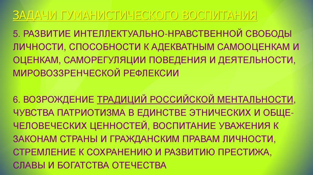 ЗАДАЧИ ГУМАНИСТИЧЕСКОГО ВОСПИТАНИЯ5. РАЗВИТИЕ ИНТЕЛЛЕКТУАЛЬНО-НРАВСТВЕННОЙ СВОБОДЫ