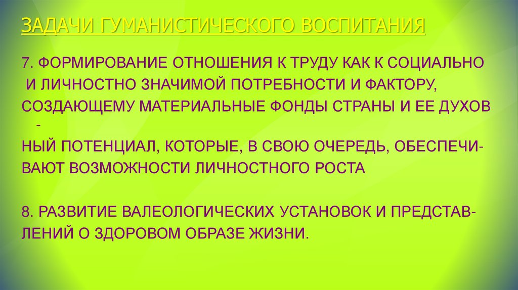 ЗАДАЧИ ГУМАНИСТИЧЕСКОГО ВОСПИТАНИЯ7. ФОРМИРОВАНИЕ ОТНОШЕНИЯ К ТРУДУ КАК К СОЦИАЛЬНО