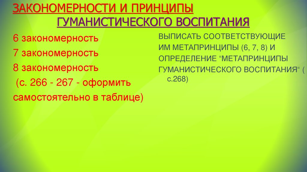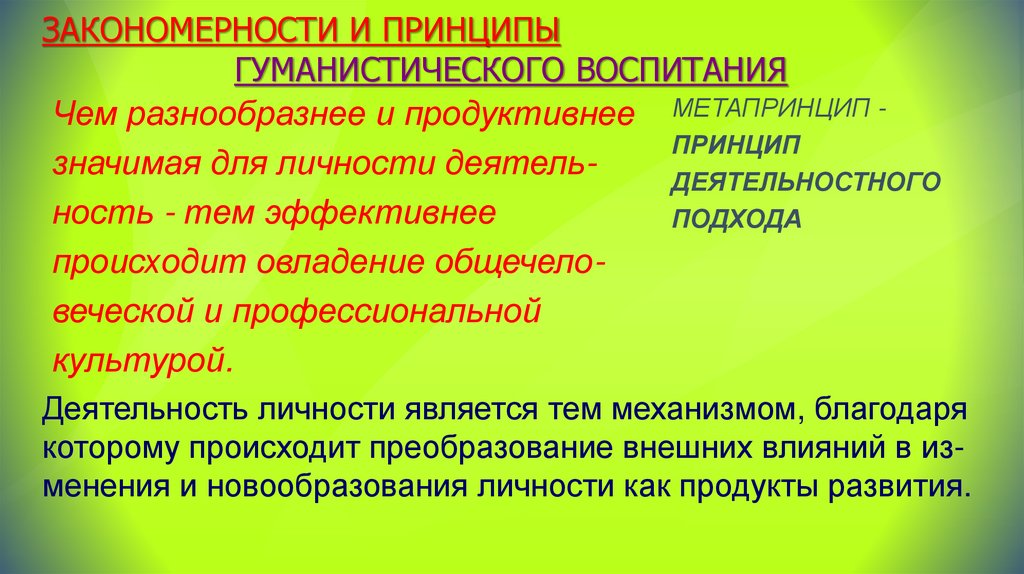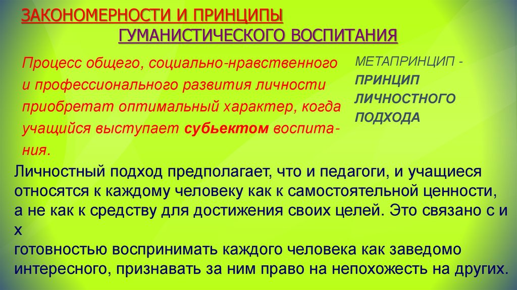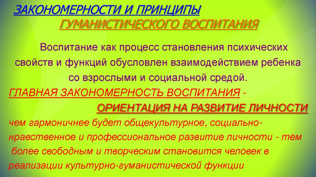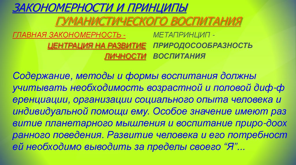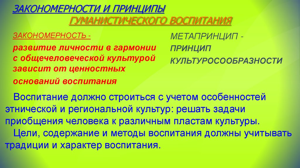 ЗАКОНОМЕРНОСТИ И ПРИНЦИПЫГУМАНИСТИЧЕСКОГО ВОСПИТАНИЯ