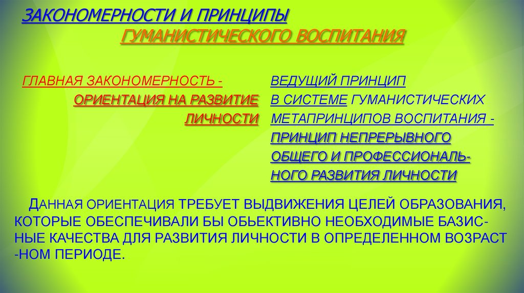 ГЛАВНАЯ ЗАКОНОМЕРНОСТЬ ВОСПИТАНИЯ ОРИЕНТАЦИЯ НА РАЗВИТИЕ ЛИЧНОСТИ