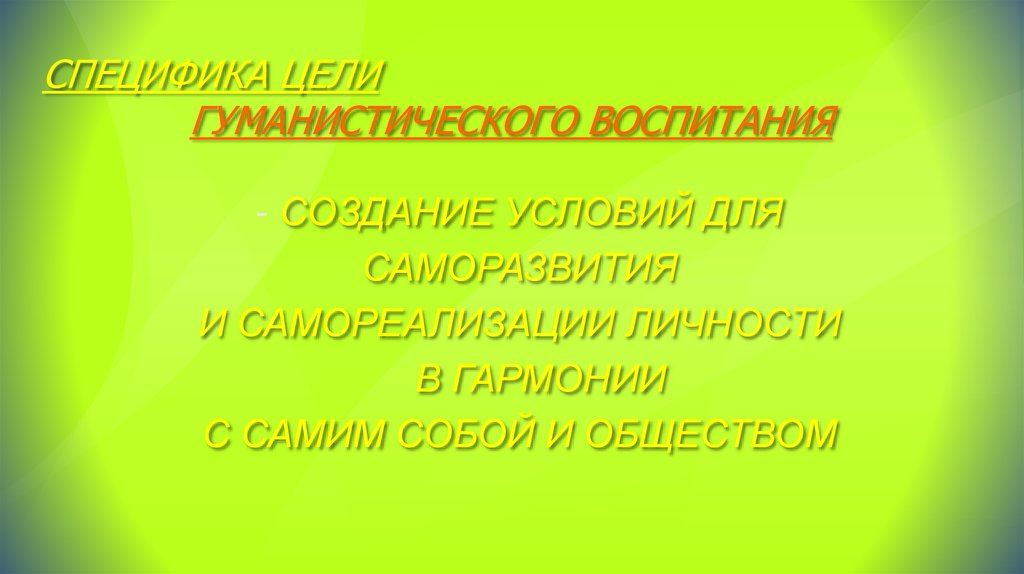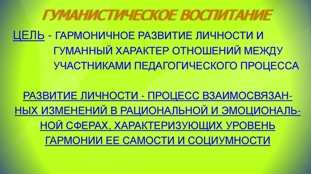 ГУМАНИСТИЧЕСКОЕ ВОСПИТАНИЕЦЕЛЬ - ГАРМОНИЧНОЕ РАЗВИТИЕ ЛИЧНОСТИ И