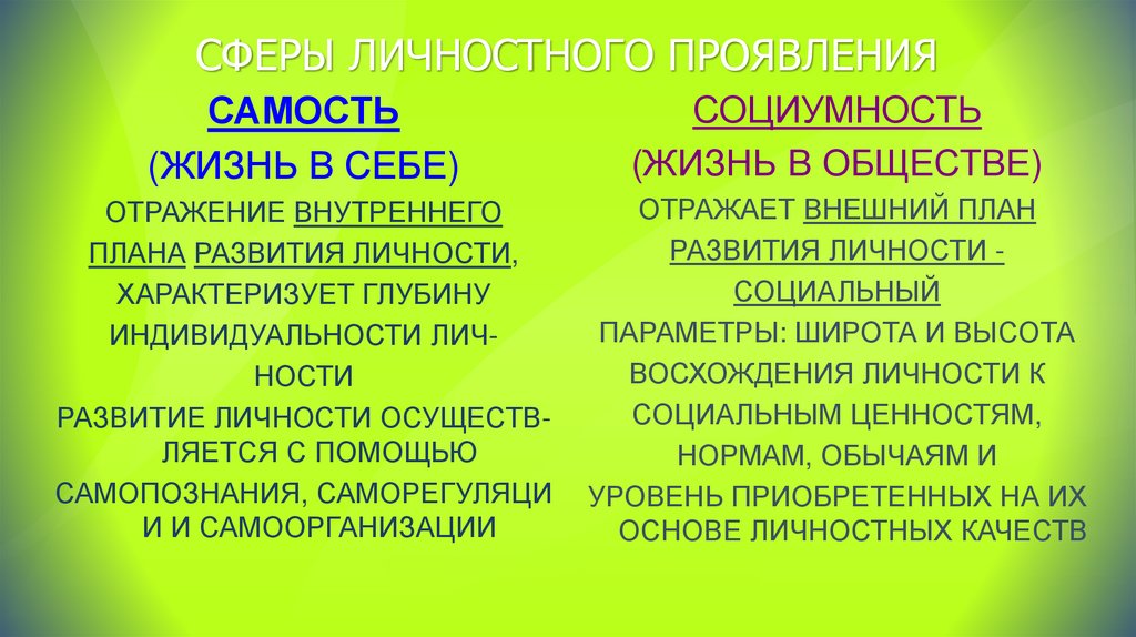 СФЕРЫ ЛИЧНОСТНОГО ПРОЯВЛЕНИЯСАМОСТЬ