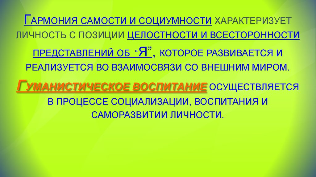 ГАРМОНИЯ САМОСТИ И СОЦИУМНОСТИ ХАРАКТЕРИЗУЕТЛИЧНОСТЬ С ПОЗИЦИИ ЦЕЛОСТНОСТИ И ВСЕСТОРОННОСТИ
