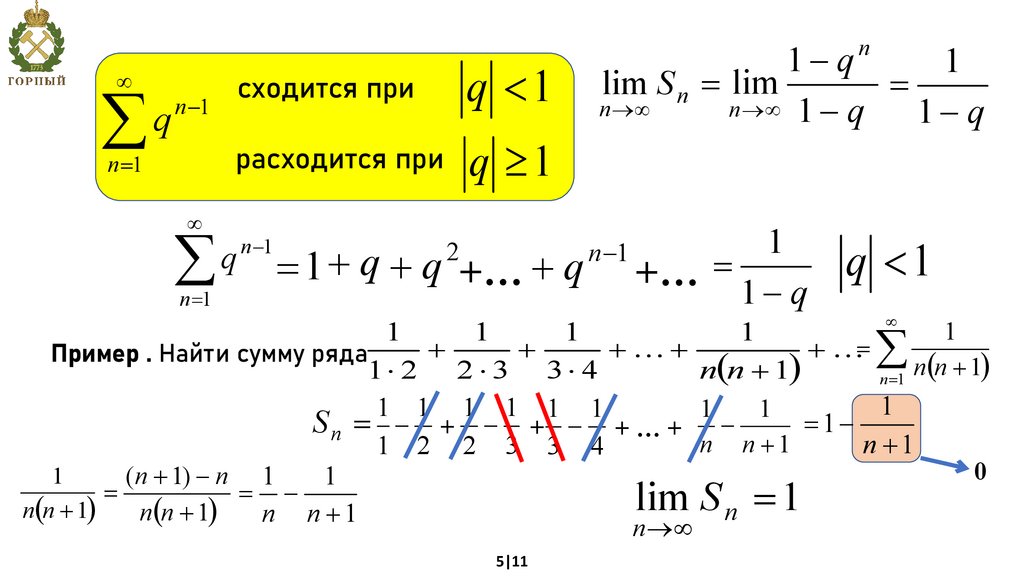 Ряд сходится, если существует конечный пределпоследовательности частичных сумм S n при n :