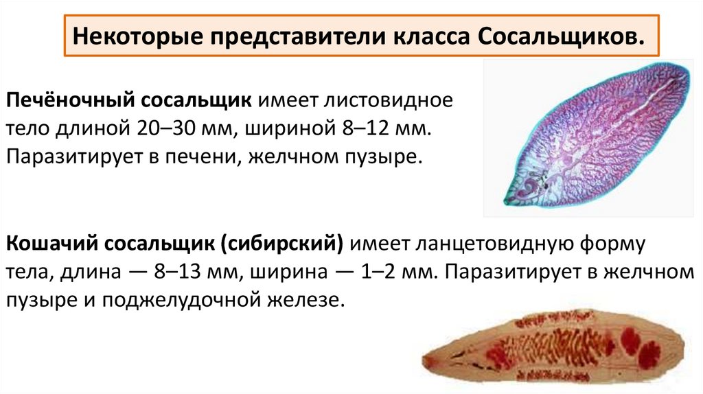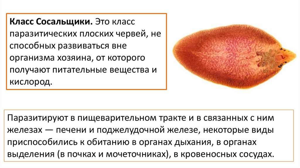 Класс Сосальщики. Это класспаразитических плоских червей, не