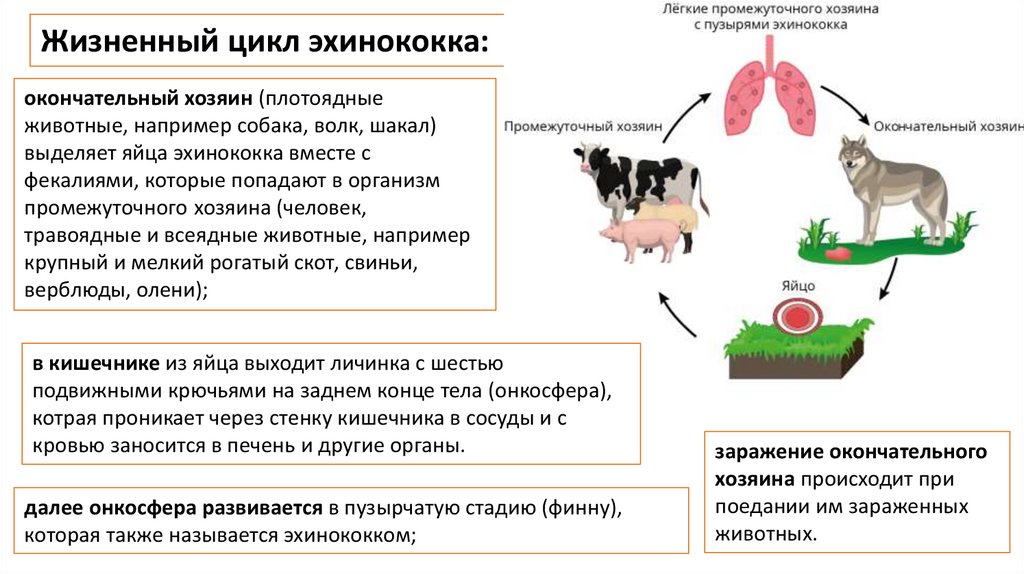 Жизненный цикл эхинококка:окончательный хозяин (плотоядные