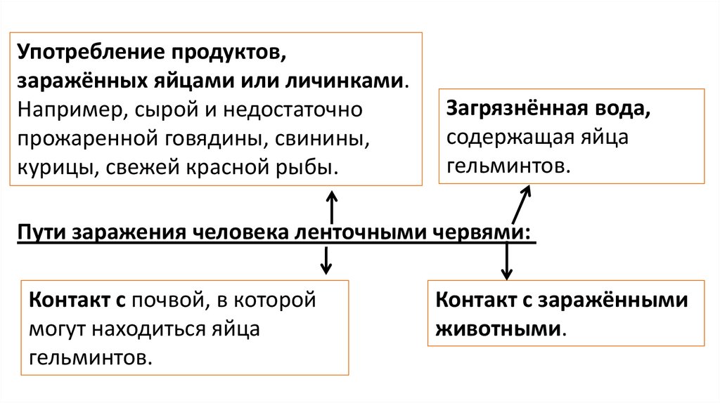 Пути заражения человека ленточными червями: