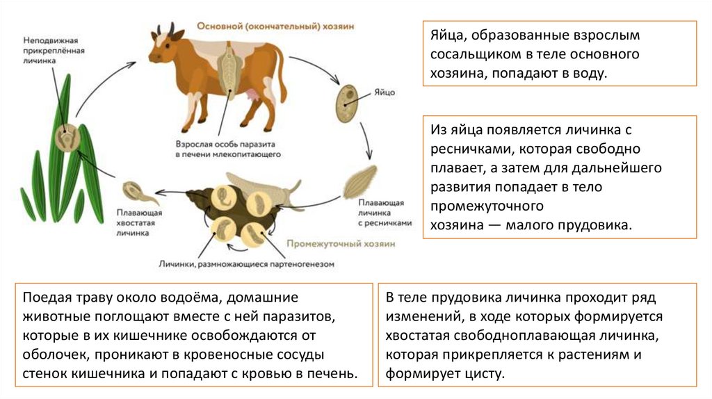 из яиц выходят личинки, которые заглатываются