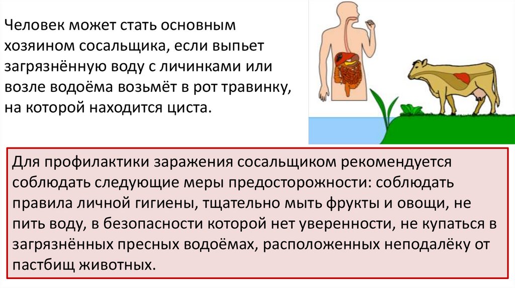 Человек может стать основнымхозяином сосальщика, если выпьет