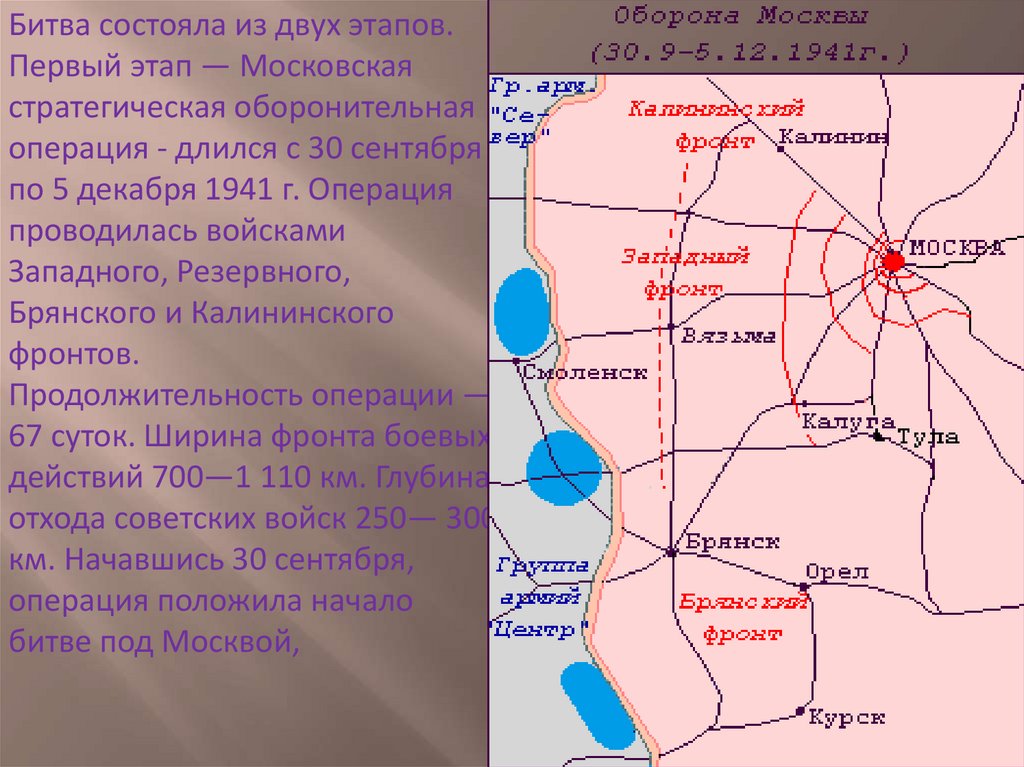 Битва состояла из двух этапов.Первый этап — Московская