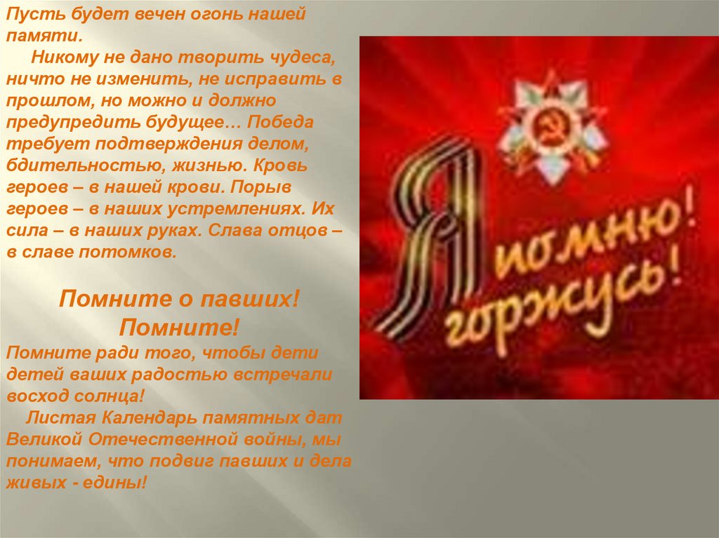Пусть будет вечен огонь нашейпамяти.