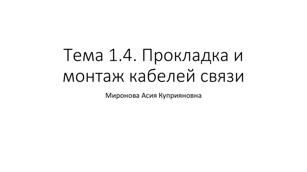 1. Тема 1.4. Прокладка и монтаж кабелей связи