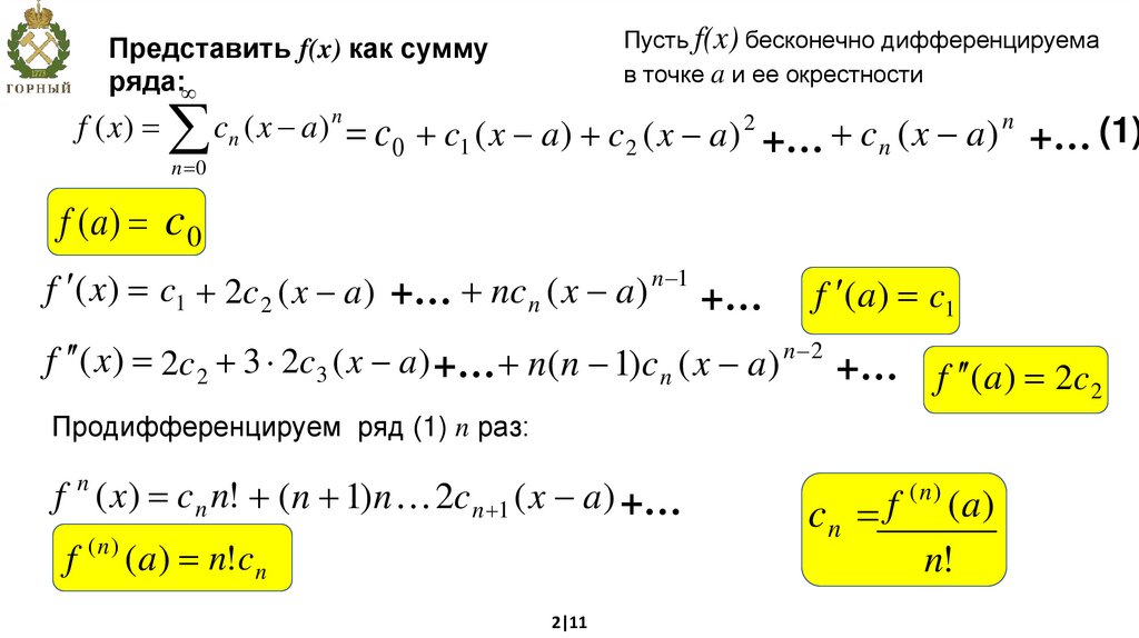 f (x) c1 2c 2 ( x a ) +… nc n ( x a ) +…