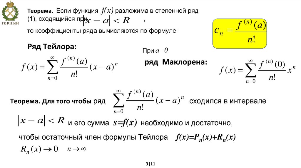 Теорема. Если функция f(x) разложима в степенной ряд(1), сходящийся приx а R