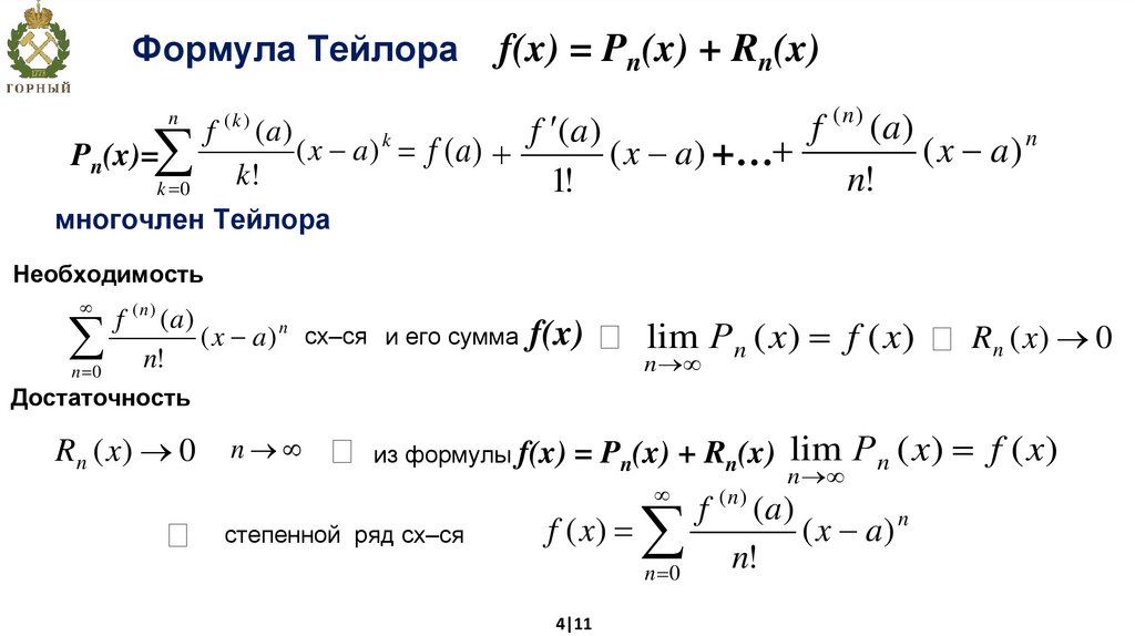 из формулы f(x) = Pn(x) + Rn(x) lim Р n ( x ) f ( x )