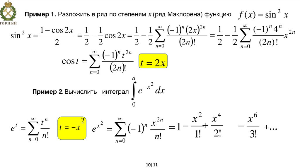 Пример 1. Разложить в ряд по степеням x (ряд Маклорена) функцию1 1