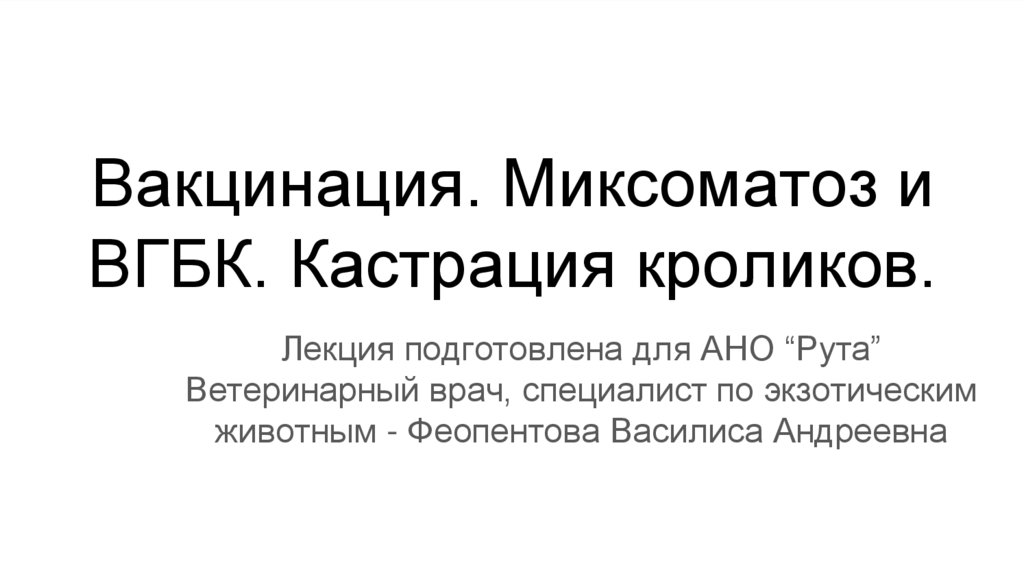 Вакцинация. Миксоматоз иВГБК. Кастрация кроликов.