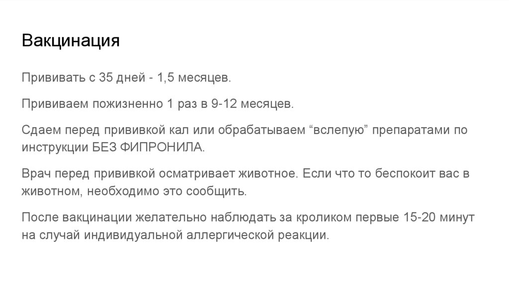 После вакцинации желательно наблюдать за кроликом первые 15-20 минут
