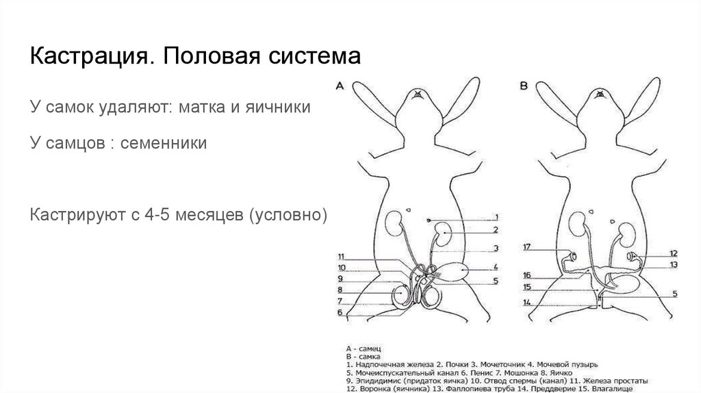 Кастрация. Половая системаУ самок удаляют: матка и яичники