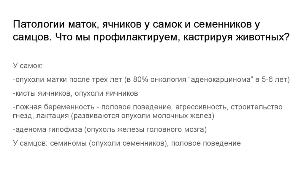 Патологии маток, ячников у самок и семенников усамцов. Что мы профилактируем, кастрируя животных?