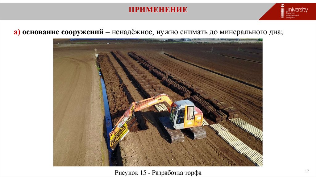 ПРИМЕНЕНИЕа) основание сооружений – ненадёжное, нужно снимать до минерального дна;