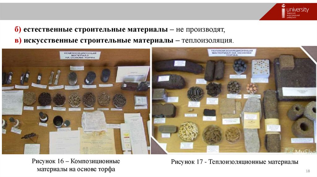 б) естественные строительные материалы – не производят,в) искусственные строительные материалы – теплоизоляция.