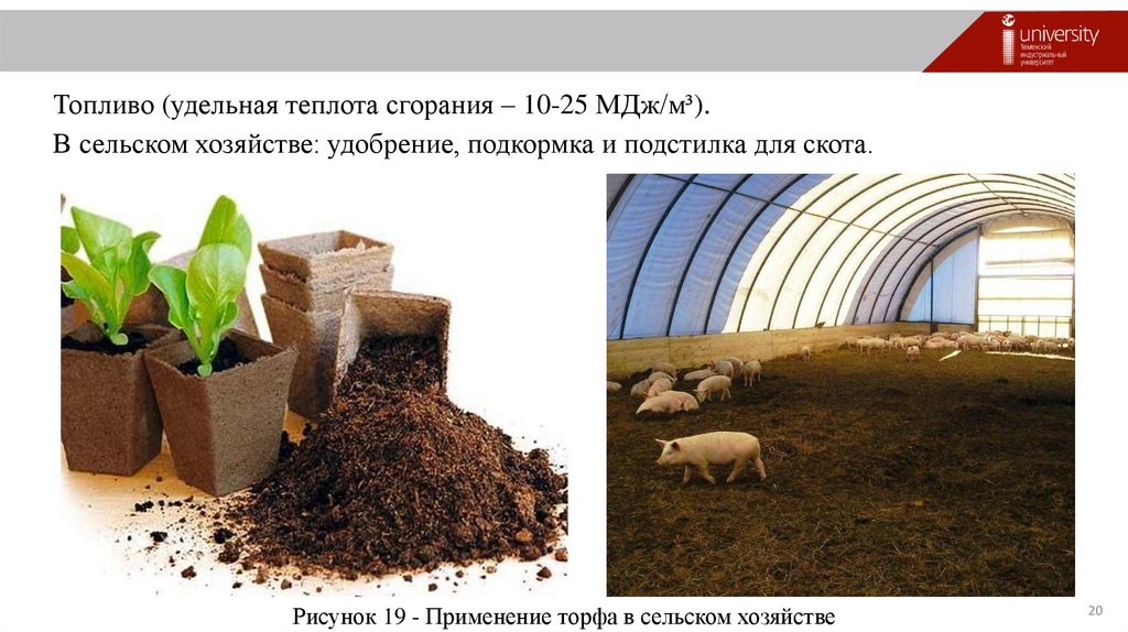 Рисунок 19 - Применение торфа в сельском хозяйстве