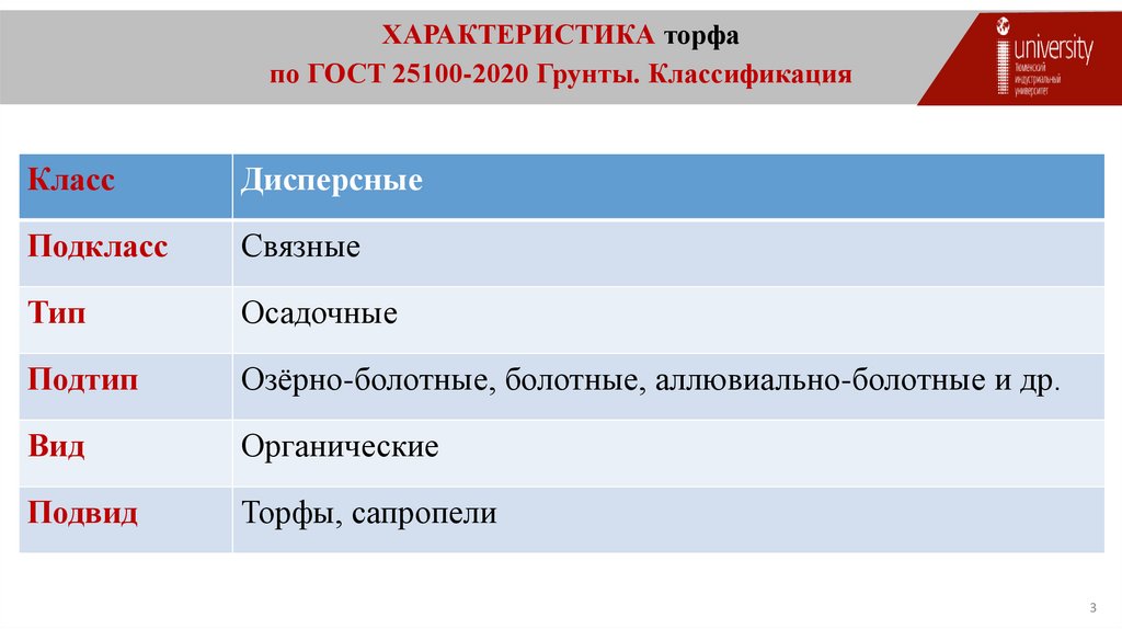 ХАРАКТЕРИСТИКА торфапо ГОСТ 25100-2020 Грунты. Классификация