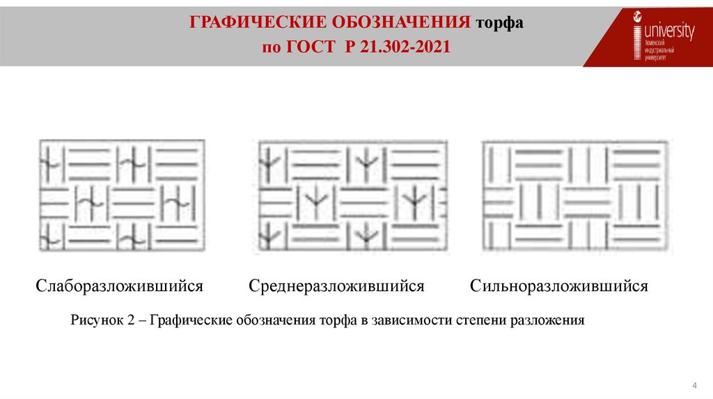 Рисунок 2 – Графические обозначения торфа в зависимости степени разложения