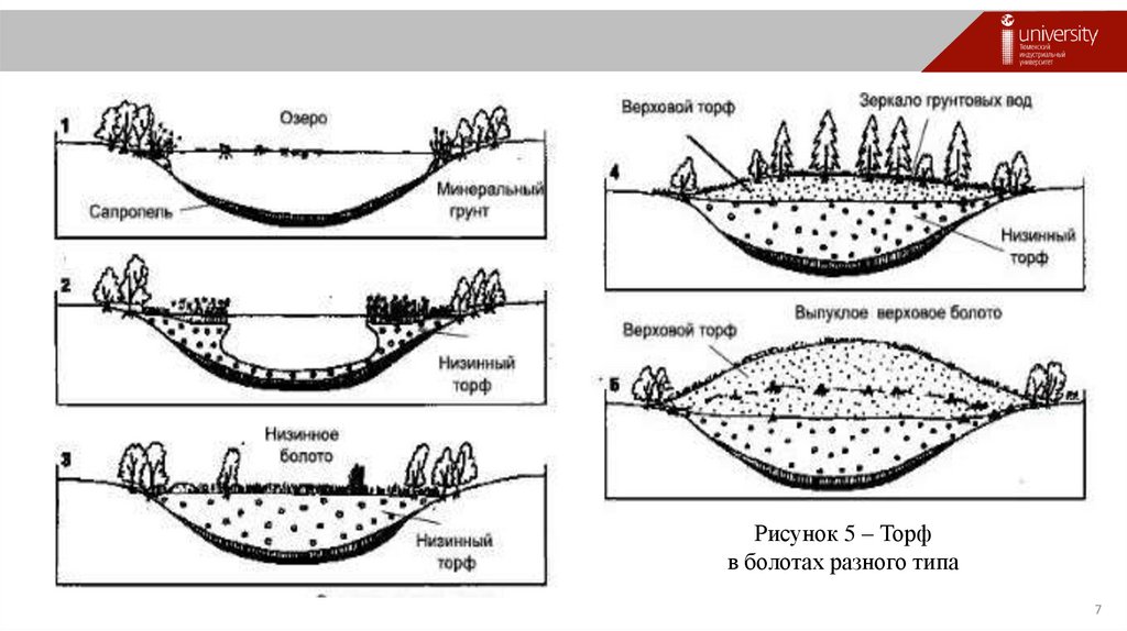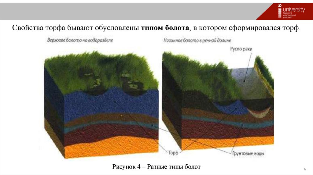 Свойства торфа бывают обусловлены типом болота, в котором сформировался торф.Рисунок 4 – Разные типы болот