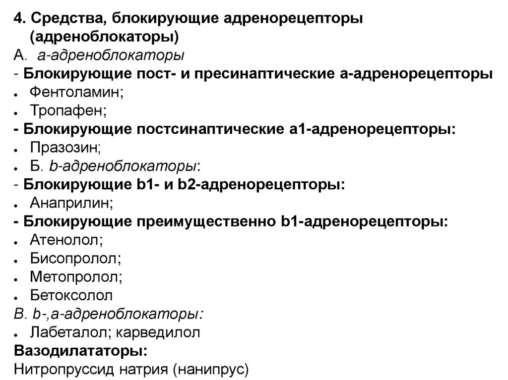 4. Средства, блокирующие адренорецепторы(адреноблокаторы)